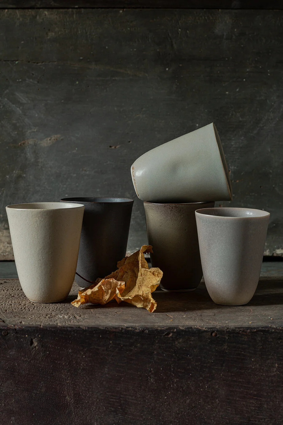 Du grès. De la porcelaine. Des lignes tendues, des matières brutes partiellement émaillées, de la monochromie.